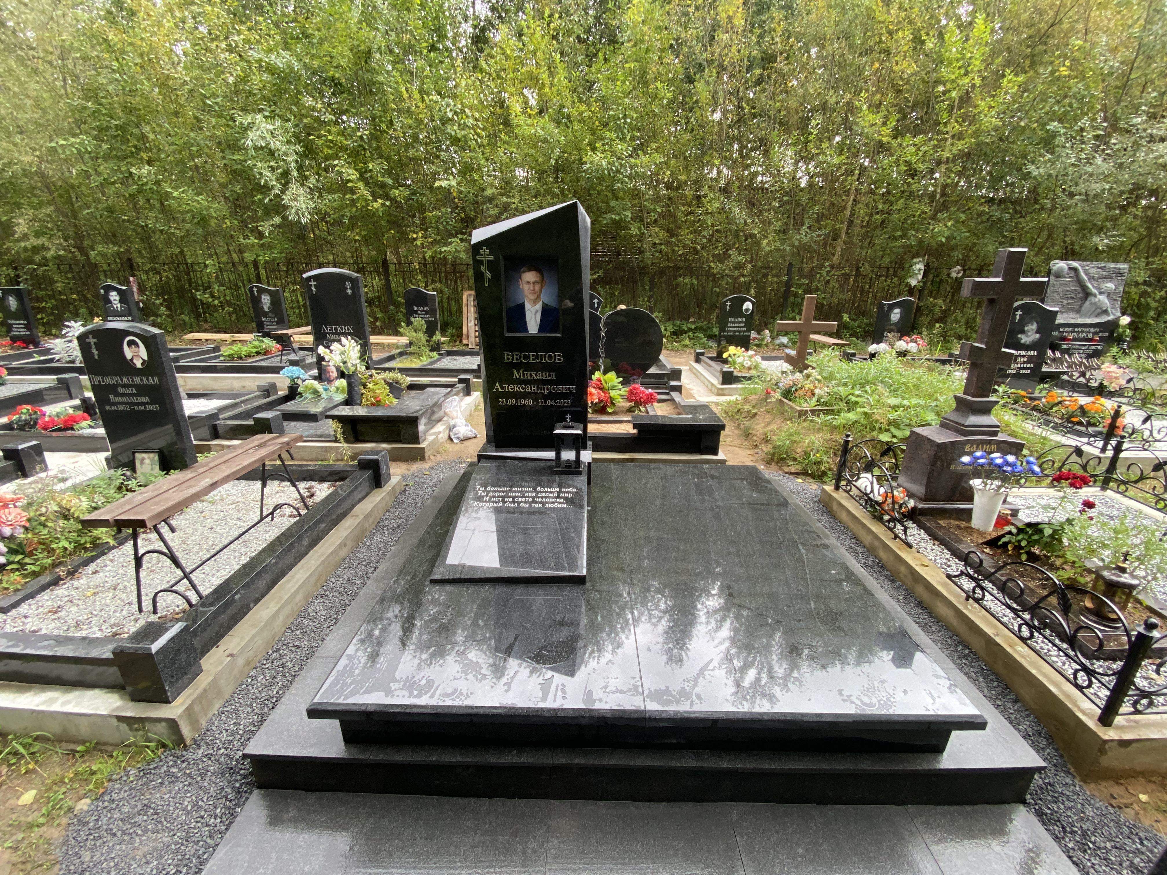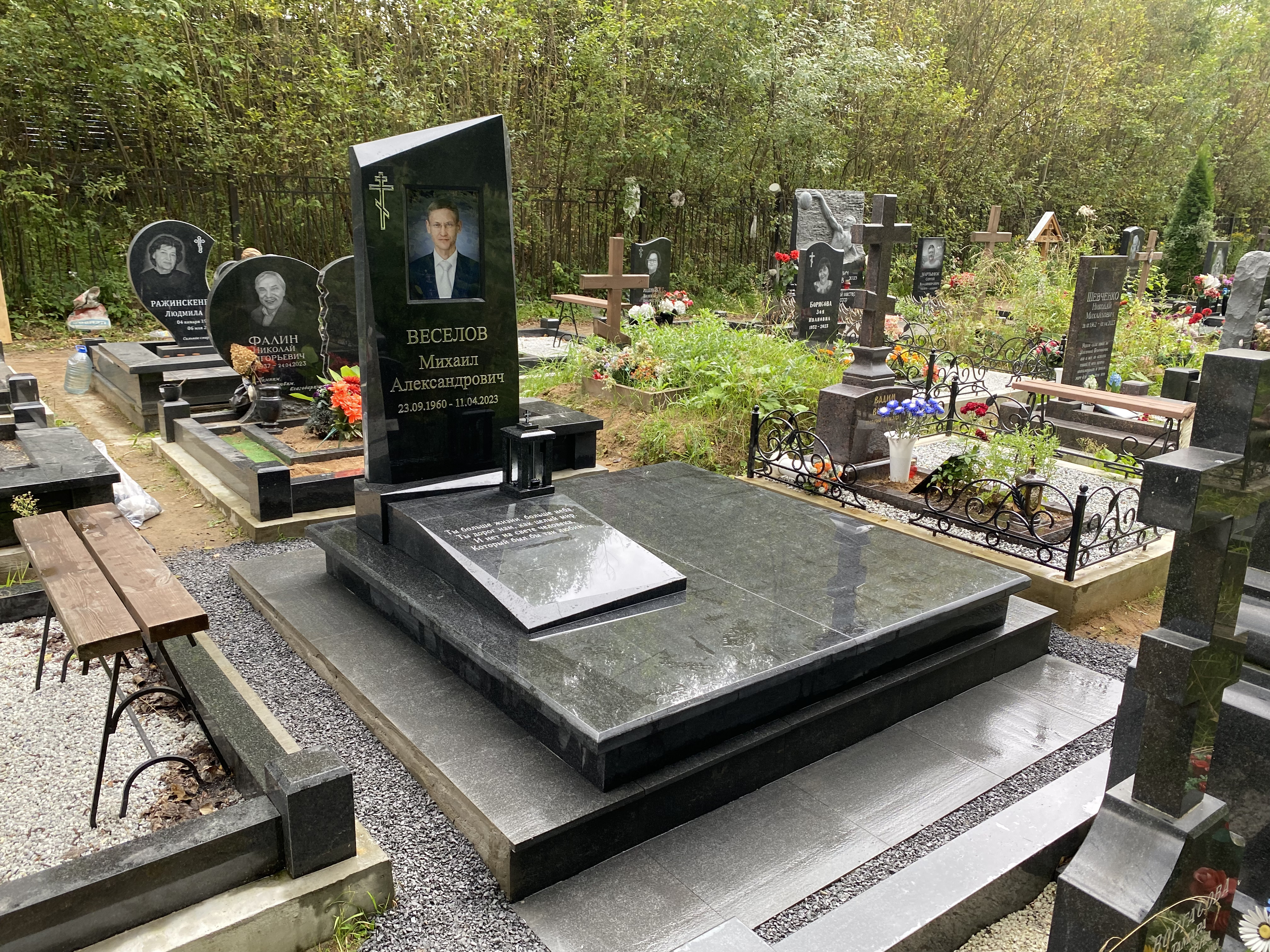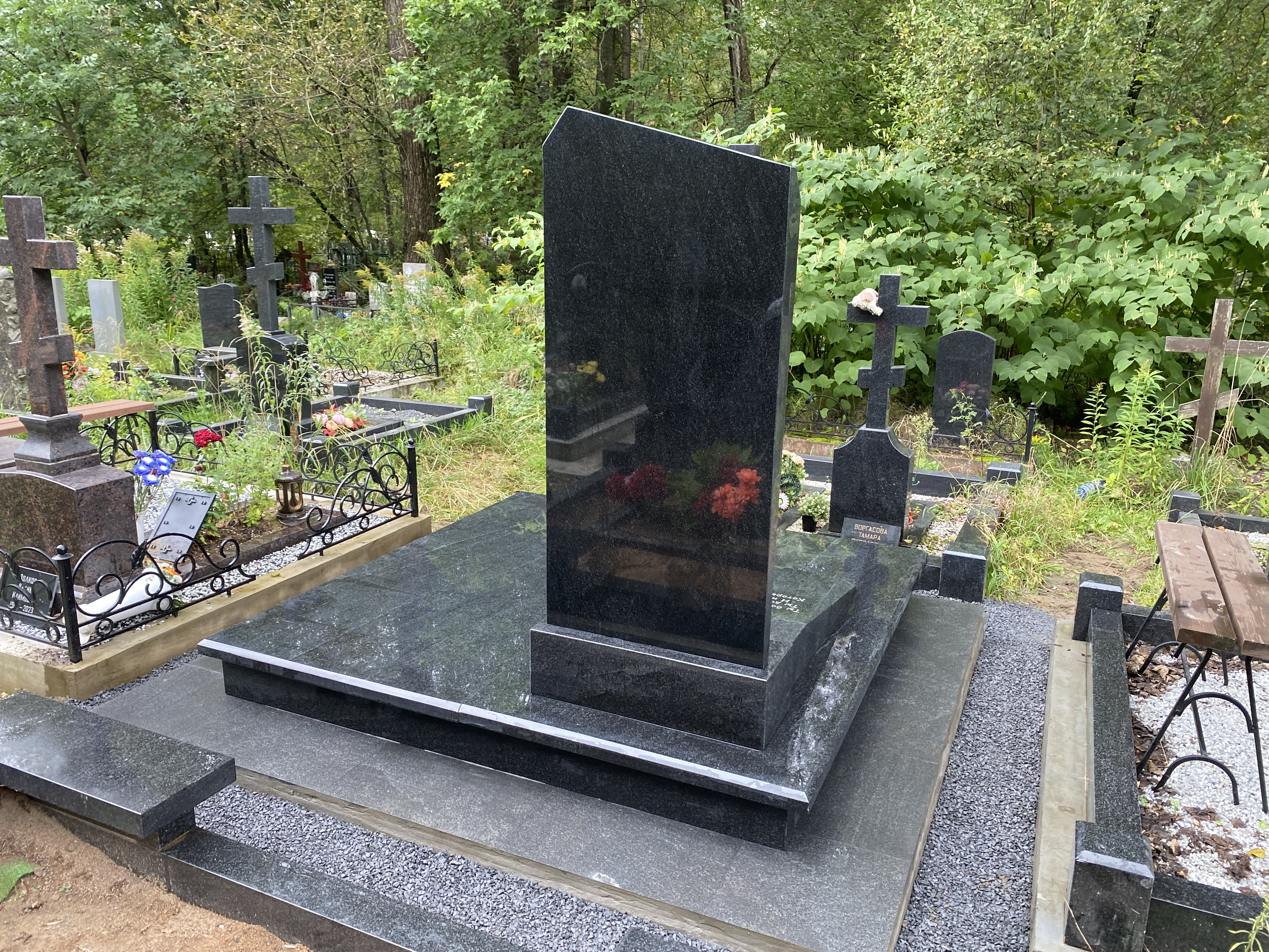 На Серафимовском кладбище Санкт-Петербурга был изготовлен и установлен мемориальный комплекс из высококачественного гранита по индивидуальному проекту. Строгая архитектурная форма комплекса соответствует классическому петербургскому стилю: лаконичные линии, продуманные пропорции и качественная полировка поверхностей. Серафимовское кладбище — одно из наиболее значимых в городе, и уровень исполнения работы отвечает этому статусу.