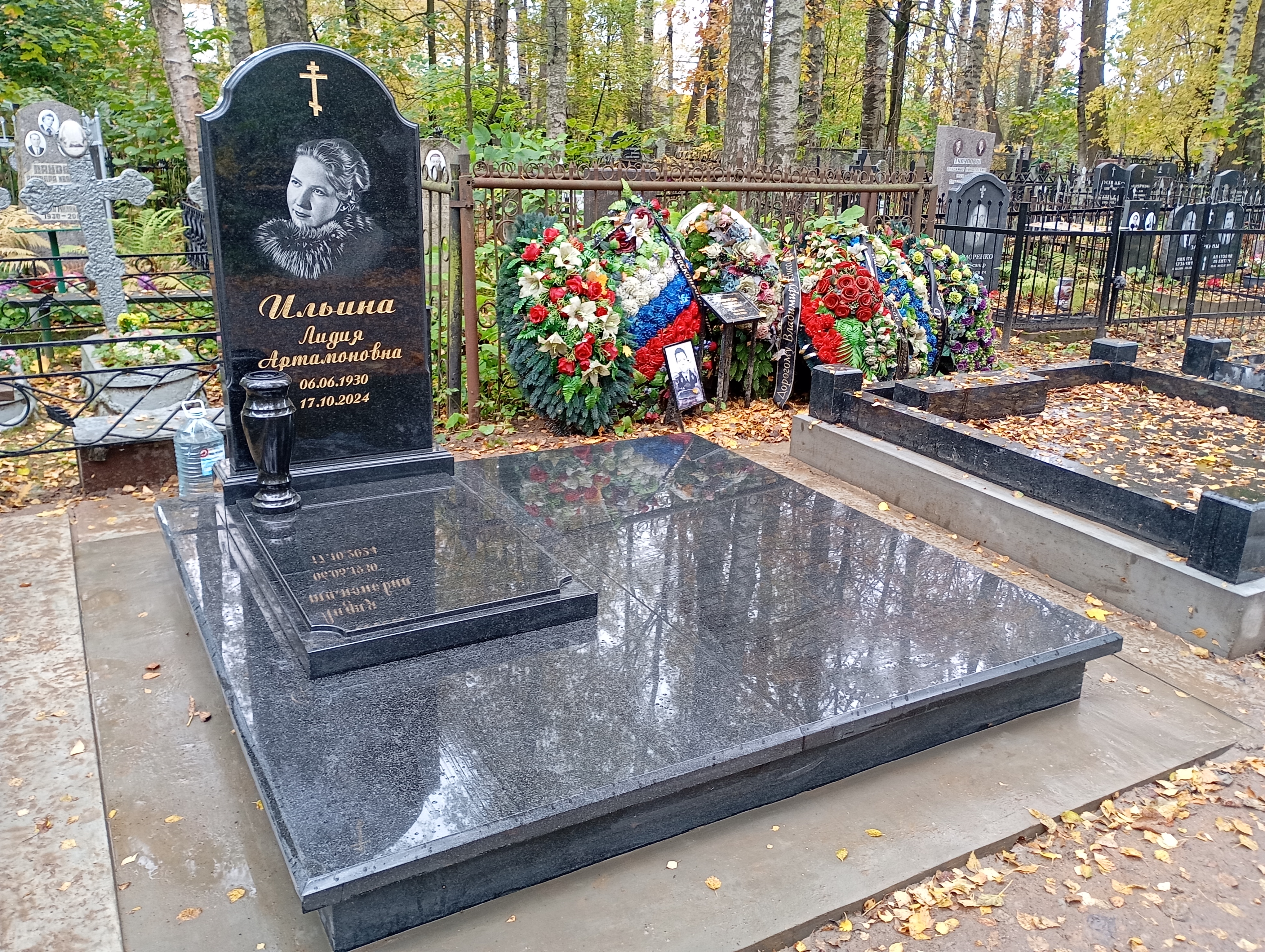 Гранитный комплекс на Серафимовском кладбище Санкт-Петербурга